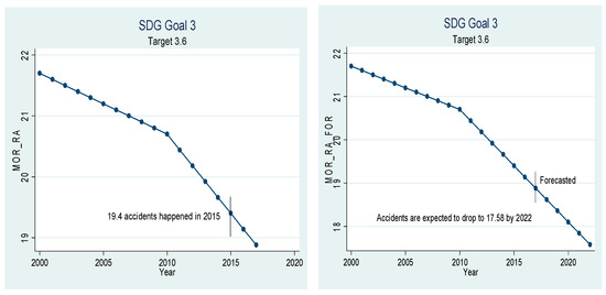 Sustainable development goal 3, target 3.6 (deaths by road accidents) ex-post and ex-ante.