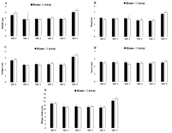 3.1. Comparison of Match Day Minus Preceding Home or Away Matches