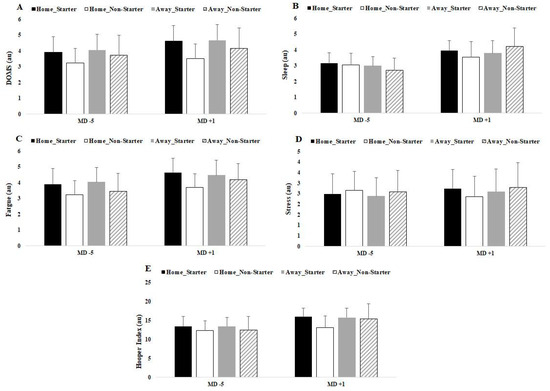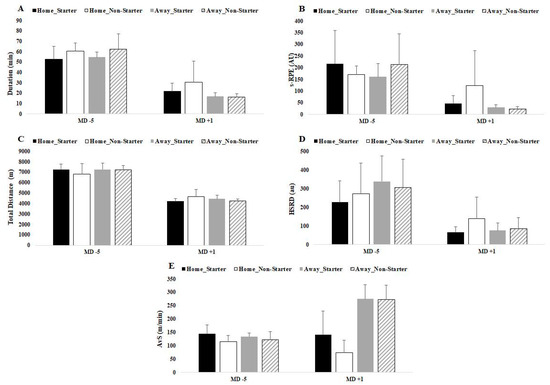 | MD-5 | Home (Starter, n = 10) | Home (Non-Starter, n = 10) | Away (Starter, n = 10) | Away (Non-Starter, n = 10) |