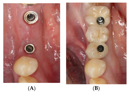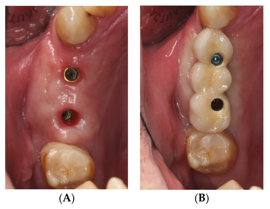 - Lago, L.; da Silva, L.; Martinez-Silva, I.; Rilo, B. Crestal Bone Level Around Tissue-Level Implants Restored with Platform Matching and Bone-Level Implants Restored with Platform Switching: A 5-Year Randomized Controlled Trial. Int. J. Oral Maxillofac. Implant. 2018, 33, 448–456. [Google Scholar] [CrossRef]