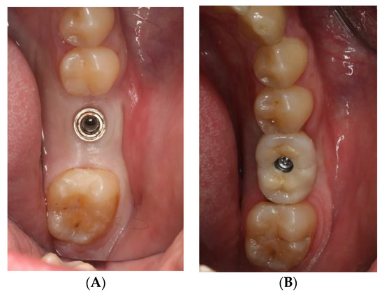 - Shin, Y.K.; Han, C.H.; Heo, S.J.; Kim, S.; Chun, H.J. Radiographic evaluation of marginal bone level around implants with different neck designs after 1 year. Int. J. Oral Maxillofac. Implant. 2006, 21, 789–794. [Google Scholar]
