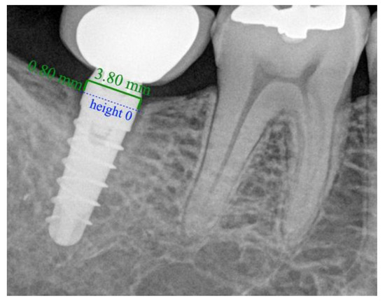 - Weber, H.P.; Buser, D.; Fiorellini, J.P.; Williams, R.C. Radiographic evaluation of crestal bone levels adjacent to nonsubmerged titanium implants. Clin. Oral Implant. Res. 1992, 3, 181–188. [Google Scholar] [CrossRef]