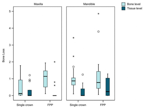 - Firme, C.T.; Vettore, M.V.; Melo, M.; Vidigal, G.M. Peri-implant bone loss around single and multiple prostheses: Systematic review and meta-analysis. Int. J. Oral Maxillofac. Implant. 2014, 29, 79–87. [Google Scholar] [CrossRef][Green Version]