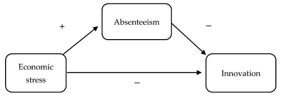 Mediation model proposed to test the associations between economic stress, absenteeism and innovation.