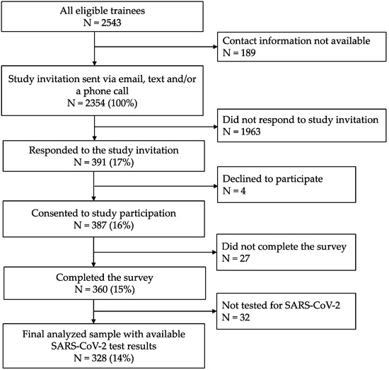 APA StylePawloski, K. R., Kolod, B., Khan, R. F., Midya, V., Chen, T., Oduwole, A., Camins, B., Colicino, E., Leitman, I. M., Nabeel, I., Oliver, K., & Valvi, D. (2021). Factors Associated with SARS-CoV-2 Infection in Physician Trainees in New York City during the First COVID-19 Wave. International Journal of Environmental Research and Public Health, 18(10), 5274. https://doi.org/10.3390/ijerph18105274