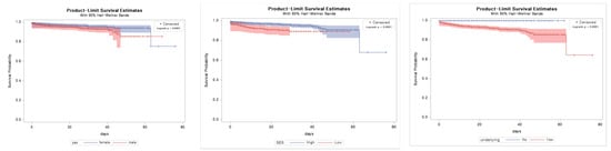 Kaplan–Meier Analysis of survival according to patients’ characteristics and conditions. SES socioeconomic status; underlying underlying disease.