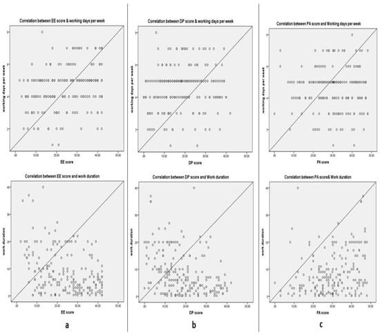 3.5. Figure 2 Correlations between Working Duration and Working Days per Week with Maslach Burnout Inventory Subfield Scores