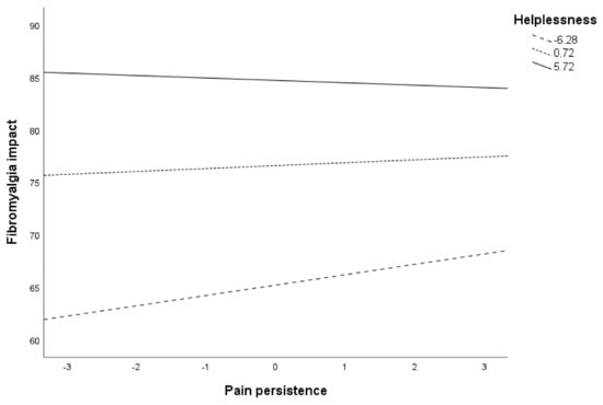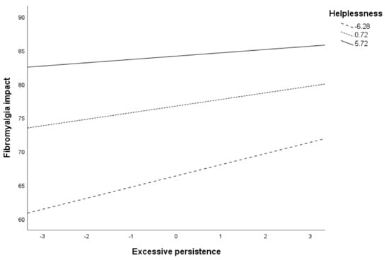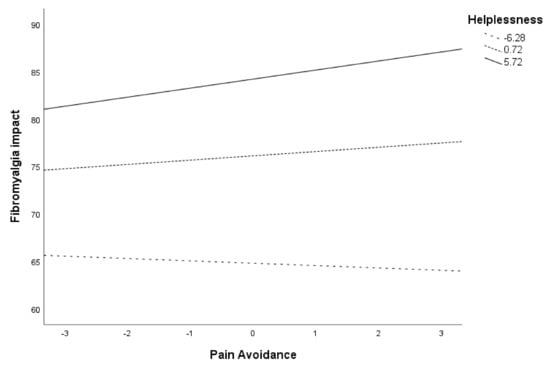 41]. Our results indicate that at high levels of helplessness, both excessive persistence and pain-related persistence patterns are associated with greater fibromyalgia impact, regardless of the pattern’s frequency. If helplessness is low or medium, these patterns will only be maladaptive if they are used very frequently. In the case of the pain avoidance pattern, when helplessness is high, a significant positive relationship is observed between the pattern’s frequency and disease impact. Previous studies carried out with patients with fibromyalgia have pointed out the role of helplessness as the best predictor of the affective dimension of pain [