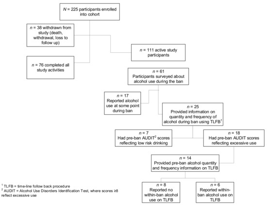 - Sobell, L.C.; Sobell, M.B. Timeline Follow-Back. In Measuring Alcohol Consumption; Litten, R.Z., Allen, J.P., Eds.; Humana Press: Totowa, NJ, USA, 1992; pp. 41–72. [Google Scholar]