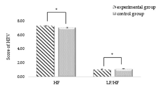 The effect of forest therapy on HRV by comparing experimental and control groups, * p < 0.05.