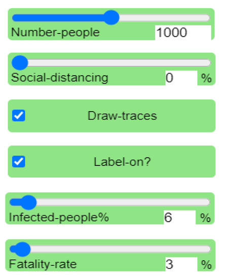 Sliders and switches of the NetLogo software interface.