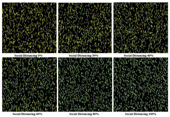 The final visual outputs of applying different levels of social distancing (with tracing individuals’ movement).