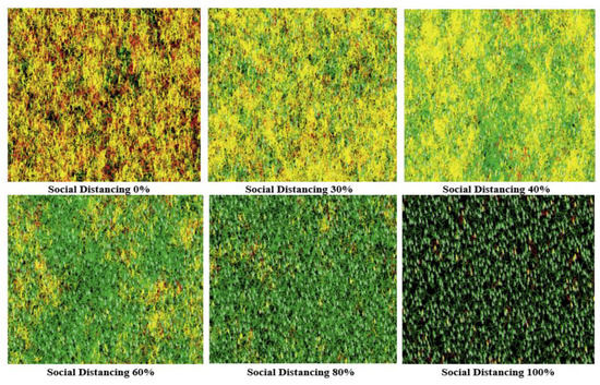 The final visual outputs of applying different levels of social distancing (without tracing individuals’ movement).