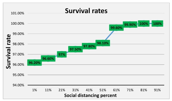 Survival rate versus percentage of social distancing.