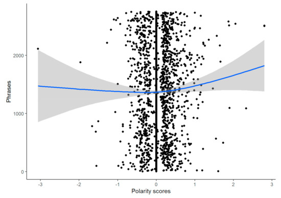 The interviews presented a polarity of 0.049 ± 0.339, reporting a slight trend to more positive emotions, mainly on account of the presence of extreme positive values (Figure 3) regarding the research questions.