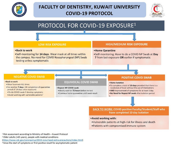 Protocol for COVID-19 exposure among the staff members, and the students adopted by the Faculty of Dentistry, Kuwait University.