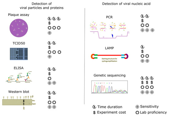 Traditional diagnosis and laboratory techniques are usually not suitable for fast on-site analysis, as they require virus isolation and biocontainment, the ability to grow cultured cells for cytopathology related assays, and/or usually expensive laboratory equipment that are difficult to transport and use at the point of care. Other disadvantages of commonly used laboratory-based procedures that increase time-to-answer and costs are time demands, the requirement for samples to be transported to centralized diagnostic laboratories, labor-intensiveness, the requirement of highly qualified operators, and sometimes lower sensitivity at relatively higher detection limits [139,140].