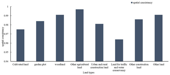 Therefore, the degree of spatial consistency of different types can be obtained by overlaying the data of land-use status in 2015 and the data of general land-use planning of 2020 after the adjustment of the planning in Rongchang District and counting the area of the plots that are not implemented in the planning and are not in line with the planning purpose.