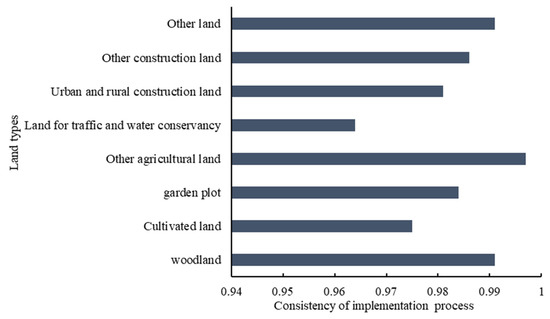 The coincidence degree of each land type in the process of planning implementation are shown in Figure 3.