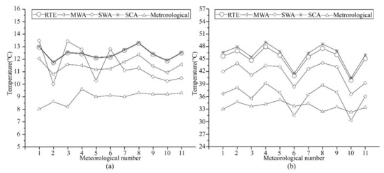 The results mentioned above indicated that all the four algorithms could retrieve LSTs for winter in Shanghai. In summer, the RTE and SCA had larger errors than the other methods and were not suitable for the retrieval of LSTs. Meanwhile, MWA and SWA were better choices.