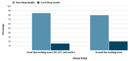 Pittsburgh Sleep Quality Index (PSQI) among frontline and second-line healthcare workers in their working areas.