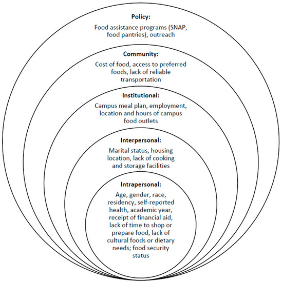 - Gaines, A.; Robb, C.; Knol, L.; Sickler, S. Examining the role of financial factors, resources and skills in predicting food security status among college students. Int. J. Consum. Stud. 2014, 38, 374–384. [Google Scholar] [CrossRef]