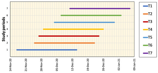 Different periods of prediction data (each of 28 days) investigated in this study.
