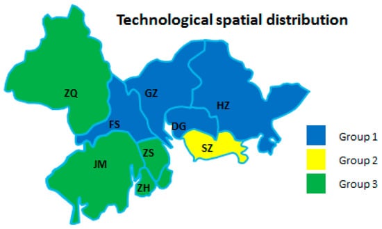 Technological spatial distribution of the nine cities.