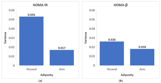 Visceral and arm adiposity variance R2 in (a) HOMA-IR and (b) HOMA-β.