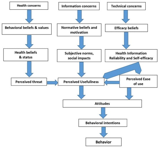- Kim, J.; Park, H.-A. Development of a Health Information Technology Acceptance Model Using Consumers’ Health Behavior Intention. J. Med. Internet Res. 2012, 14, e133. [Google Scholar] [CrossRef] [PubMed]