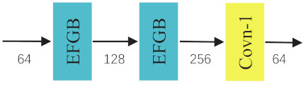 since c denotes the number of channels and , we can get , which means the proposed EFGB can roughly reduce the computation and model size by two times.