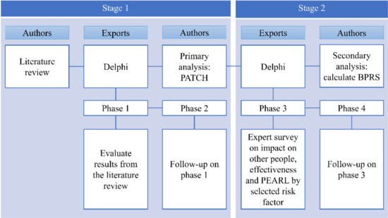 A multi-method design based on the BPRS concept was applied in this study [12]. It was performed in two stages. In the first stage, primary risk factors were selected by conducting a literature review on risk factors for prescription drug overdose among older adults. A two-phase modified Delphi was performed for the primary selection of risk factors [13]. In the second stage, the final priority was calculated for the risk factors that were initially selected using the BPRS formula (Figure 1) [14].
