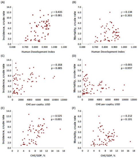 3.2. Epidemiology and Parameters of the Development and Health Expenditure of Lip and Oral Cancer in the Selected Countries