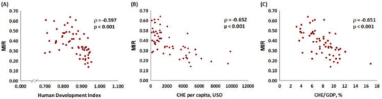 3.3. Association between MIR and Parameters of the Development and Health Expenditures in the Selected Countries