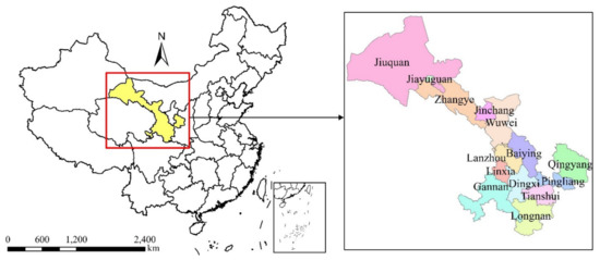 - National Bureau of Statistics (NBS). Gansu Development Yearbook (2000–2017); NBS: Beijing, China. Available online: https://data.cnki.net/statisticalData/index?ky=%E7%94%98%E8%82%83%E5%8F%91%E5%B1%95%E5%B9%B4%E9%89%B4&IsSubcribe=0 (accessed on 15 October 2020).