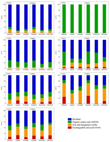 - Davidson, C.M.; Urquhart, G.J.; Ajmone-Marsan, F.; Biasioli, M.; da Costa Duarte, A.; Díaz-Barrientos, E.; Grčman, H.; Hossack, I.; Hursthouse, A.S.; Madrid, L.; et al. Fractionation of potentially toxic elements in urban soils from five European cities by means of a harmonised sequential extraction procedure. Anal. Chim. Acta 2006, 565, 63–72. [Google Scholar] [CrossRef]