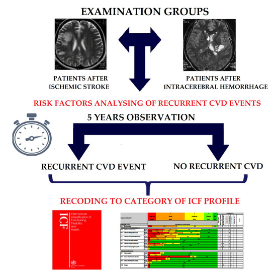 - To use the categories of the ICF classification as a tool for presenting differences in the incidence of risk factors for recurrent CVD incidents according to previous IS or ICH and the recurrence of CVD incidents over a 5-year follow-up period.