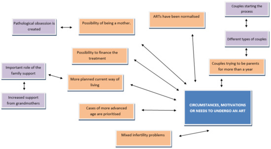 Figure 3 shows a “cognitive map” based on the circumstances, motivations, and needs for assisted reproductive treatment. For this issue, the interviewees allude to a series of clear ideas to be discussed below: