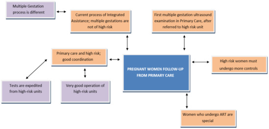 Figure 5 shows the perception that women with multiple gestations have of the follow-up made from primary care. It also reflects the differentiated care that midwives refer to in their follow-up, demanding to be recognised in order to make this work visible.