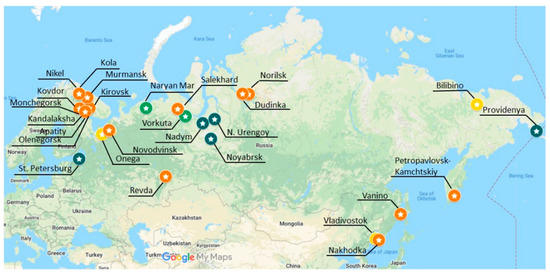 Russia is one of the most significant stakeholders in the Artic region. The Russian Arctic covers an area of about 3 million m2 (18% of the Russian territory), including 2.2 million m2 of land [1]. It has a population of about 2.4 million, about 1.5% of the Russian population, but generates around 10% of Russia’s gross domestic product (GDP) [2]. The Russian Arctic contains vast deposits of natural resources, in particular, petroleum [3,4]. The total amount of undiscovered petroleum in the Arctic area has been estimated to be 413 BBOE (billion barrels of oil equivalent), which accounts for about 22% of the world’s undiscovered conventional oil and gas resources [5]. In terms of oil and gas, Russia has a larger share than other Arctic countries, with its oil accounting for 41% and its natural gas for about 70% of the total Arctic resources [5]. In addition, large quantities of Russian proven mineral resources are located in the Arctic, such as more than 96% of Russian platinum metals, over 90% of nickel and cobalt, and about 60% of copper [3].