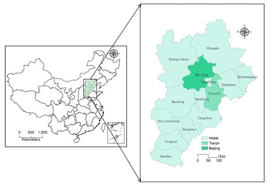 Rapid economic development and urbanization have concurrently boosted energy consumption and pollutant emissions while promoting nations’ overall power and social progress [], which has led to increasingly serious environmental pollution [] and health problems [] in urban areas. As Samet [] suggested, urban air pollution could become a public health and environmental problem of crisis proportions in the near future, if it is not so already. Since 2012, haze pollution has become a severe environmental problem that has impacted individuals’ health and daily lives in China [,]. On the one hand, the continuous spread of air pollution on a large scale endangers the health of local residents, especially the elderly []. On the other hand, pollution has huge economic consequences. China will lose 2% of its total GDP and bear healthcare costs of USD 25.2 billion until 2030 []. As one of the five national-level urban agglomerations in China, the Beijing–Tianjin–Hebei urban agglomeration (BTHUA) is the implementation of the regional coordinated development strategy, and it is also the region with the most serious air pollution [,] and the most acute contradiction between resources, environment, and development [] in China. Eight of the ten cities with the highest average annual concentration of PM2.5 were located in BTHUA in 2015 []. Therefore, the status of high strategic status, high population density, high development speed, high environmental pollution, high energy emissions, and low environmental carrying capacity has led to the great conflict between regional economic development and environmental protection in BTHUA []. The central and regional governments have put forward many policies, models, and strategies for the air pollution control in BTHUA from the scale of nation, urban agglomeration, city, and county. It is urgent to systematically sort out and summarize them, so as to provide significant reference for the prevention and control of air pollution in other regions.