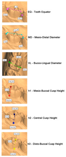 In addition, even in the encoded measurements, there are anatomical points of reference to perform the measurements, and the given different interpretations only increase the possibility of error between different operators. In addition, the references used for the correct measurement are often subject to the influence of tooth orientation in space and, at the same time, to the impossibility of verifying the relative orthogonality between diameters. Therefore, in this scenario, the use of digital scans—adopted in the present investigation—could help to perform the measurements more accurately.