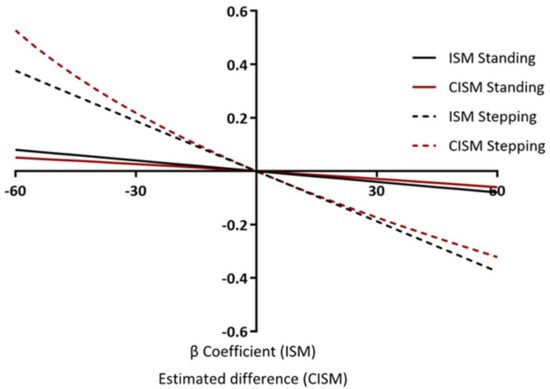 This study used ISM and CISM analyses to examine the associations of replacing time spent sitting with standing or stepping and with markers of cardiometabolic health. Overall, the findings showed minimal differences in the magnitude of associations between the methods. Both methods demonstrated favourable associations for the reallocation of 60 min of sitting to standing and to stepping for BMI, waist circumference, triglycerides, HDL cholesterol, and CCRS (with and without adiposity). Nevertheless, whilst it was observed that the overall interpretation was similar between models, associations were consistently stronger for ISM models, although these differences were statistically and clinically negligible.