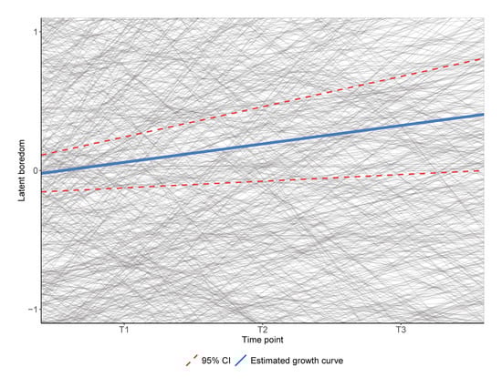 Additionally, prior research has shown that there is variance in adolescents’ boredom growth trajectories. Changes in boredom were linked with contextual and individual factors such as task value, learning style, effort regulation, and academic engagement [,]. No study to date seems to have explored whether changes in academic boredom are related to psychological and physical health symptoms. However, based on the existing evidence on concurrent psychological and physiological correlates of boredom, it is conceivable that stronger increases in boredom are linked with lower HRQoL in adolescents, hence our third hypothesis.