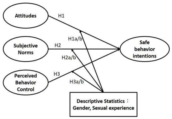 Related studies have indicated that differences in both sexual experience and biological sex influence students’ perceptions of sexual behavior [,]. This study posited that the behavioral intentions of college students may differ with sexual experience and biological sex. In the TPB model, biological sex and sexual experience also affect sexual intentions. Therefore, the following hypotheses were proposed:
