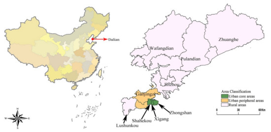 To address this current research gap, we focused our study on evaluating the medical services at the city level for both urban and rural communities, focusing mainly on the coordinated development between population development and medical services. For this study, the city of Dalian was selected as the study area (Figure 1). Dalian is one of the 35 representative cities in China chosen by the United Nations Development Agency in its report entitled China Urban Sustainable Development: Measuring Ecological Investment and Human Development [21]. The city has shown promising results towards the sustainable and coordinated development of its urban and rural population, particularly in terms of medical and health services. Population and medical and health service data from 2008 to 2017 were obtained from the Dalian City Investigation Team of the National Bureau of Statistics. These data were then used to develop an evaluation system that would assess the level of sustainable and coordinated development in urban and rural medical services. We used the comprehensive development index model to measure the population and medical services for the various regions of Dalian City. We then determined the interaction coupling and coordination model of multiple systems using the capacity coupling coefficient model, which is based on the concept of capacity coupling in physics. This study provides a more realistic assessment of the development of population and medical services, analyzing variations in development for particular areas within a city. The results from this study offer a reasonable scheme to improve health services for a growing population and promote the coordinated development between population and medical services.