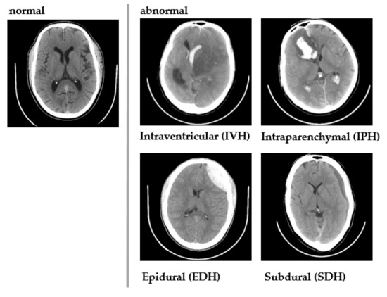 - Flanders, A.E.; Prevedello, L.M.; Shih, G.; Halabi, S.S.; Kalpathy-Cramer, J.; Ball, R.; Mongan, J.T.; Stein, A.; Kitamura, F.C.; Lungren, M.P.; et al. Construction of a machine learning dataset through collaboration: The RSNA 2019 brain CT hemorrhage challenge. Radiol. Artif. Intell. 2020, 2, e190211. [Google Scholar] [CrossRef]