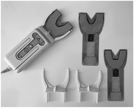 Functional analysis of dental occlusion was performed using the T-scan III system (Tekscan, Inc., Boston, MA, USA), which consists of a special panel (handle) that enables registration and a para-occlusal holder equipped with a sensor in a form of 100-micron-thick articulating foil (Figure 1). The resiliency of the sensor to variations of occlusal forces enables the evaluation of the distribution of contact points in relation to the analyzed phase of the occlusion. Due to the width of the dental arches, the sensor is available in two sizes: small (S) and large (L).