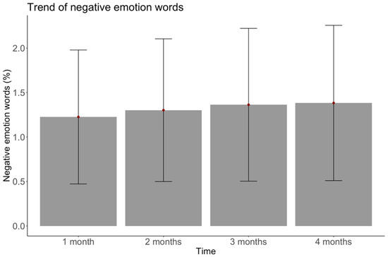 Overall negative emotion words used over time. Note. Bars represent 1 standard deviation above and below the mean.