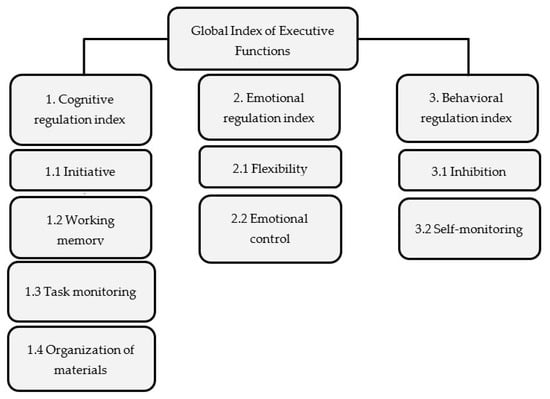 - Gerst, E.H.; Cirino, P.T.; Fletcher, J.M.; Yoshida, H. Cognitive and behavioral rating measures of executive function as predictors of academic outcomes in children. Child Neuropsychol. 2017, 23, 381–407. [Google Scholar] [CrossRef] [PubMed] [Green Version]